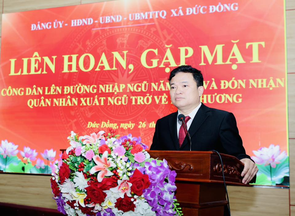 Chiều 26/2, xã Đức Đồng tổ chức gặp mặt, tặng quà công dân lên đường nhập ngũ thực hiện nghĩa vụ quân sự, tham gia nghĩa vụ Công an Nhân dân năm 2026 và đón nhận quân nhân hoàn thành nghĩa vụ trở về địa phương.