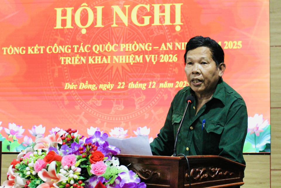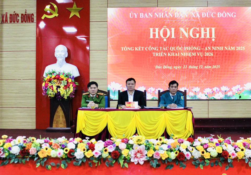 Chiều ngày 22/12, UBND xã Đức Đồng tổ chức Hội nghị tổng kết công tác Quốc phòng – An ninh năm 2025, triển khai phương hướng, nhiệm vụ năm 2026.